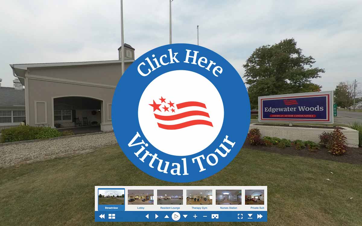 We invite you to explore Edgewater Woods. You will be able to experience an in-person walk-through from the comfort of your own home, office or wherever your mobile device or computer takes you. We invite you to take this journey and picture yourself or your loved one in our Anderson community. If you would like assistance navigating through the special places that our residents love, we proudly offer live guided tours. Contact us today to schedule time with one of our caring team members.