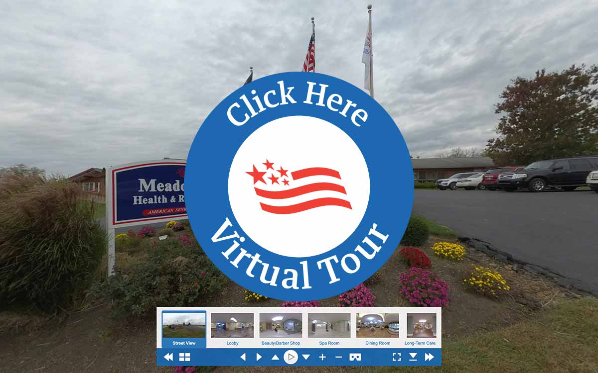 We invite you to explore Meadow View Health & Rehabilitation. You will be able to experience an in-person walk-through from the comfort of your own home, office or wherever your mobile device or computer takes you. We invite you to take this journey and picture yourself or your loved one in our Salem community. If you would like assistance navigating through the special places that our residents love, we proudly offer live guided tours. Contact us today to schedule time with one of our caring team members.