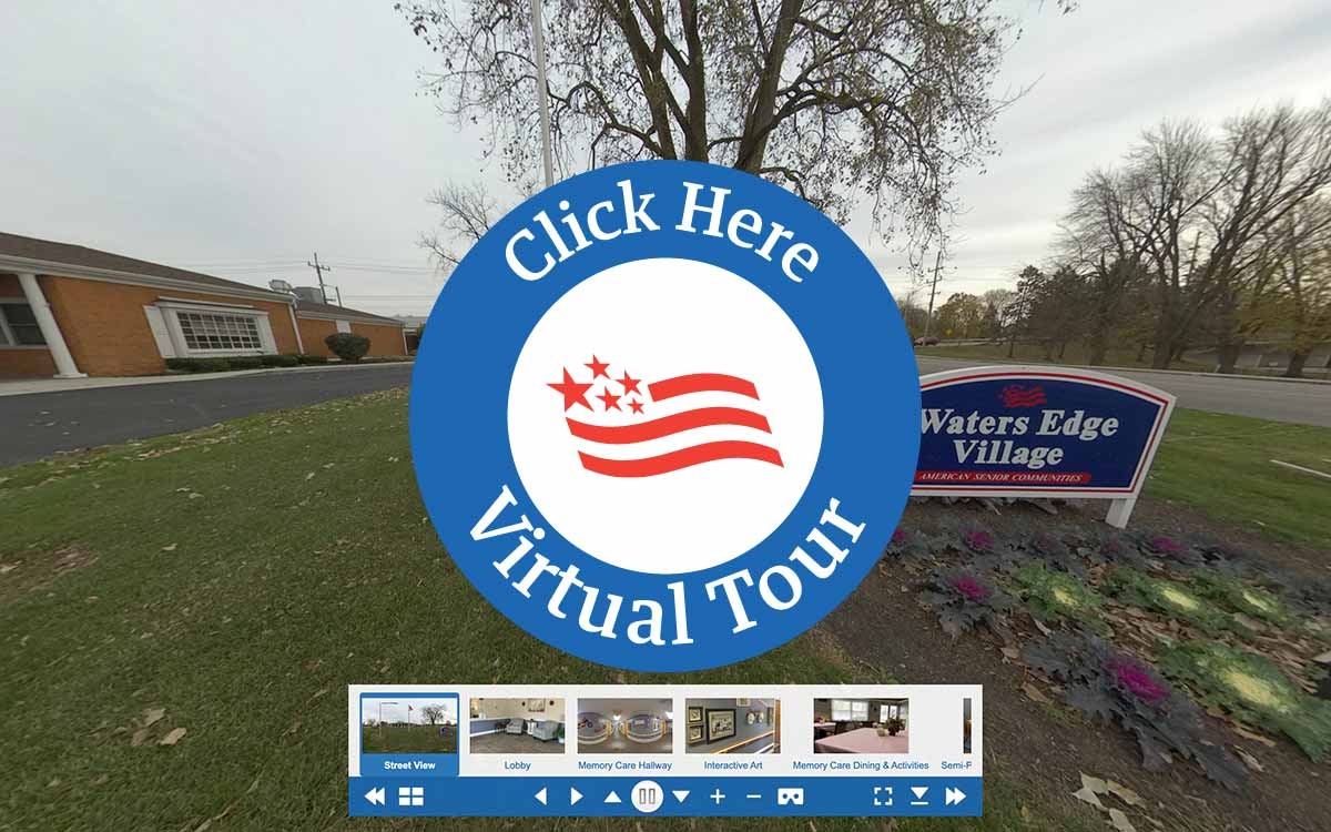 We invite you to explore Waters Edge Village in Muncie, Indiana. You will be able to experience an in-person walk-through from the comfort of your own home, office or wherever your mobile device or computer takes you. We invite you to take this journey and picture yourself or your loved one in our community. If you would like assistance navigating through the special places that our residents love, we proudly offer live guided tours. Contact us today to schedule time with one of our caring team members.