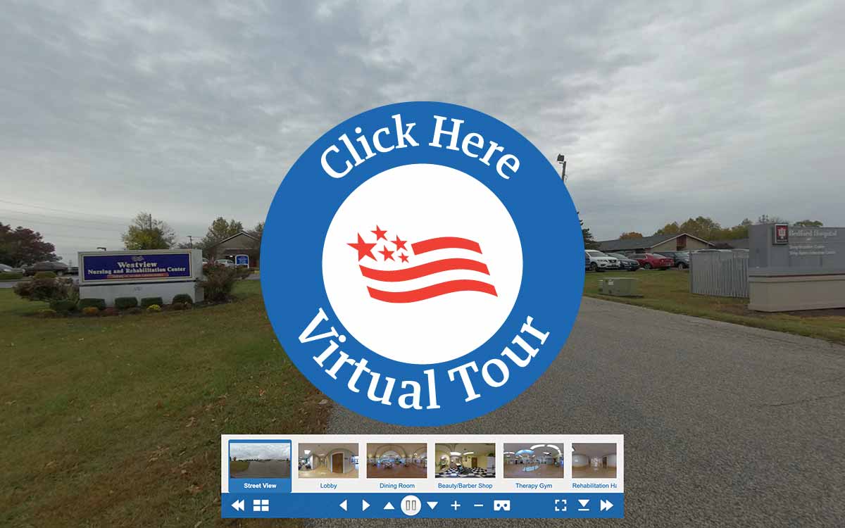 We invite you to explore Westview Nursing & Rehabilitation Center. You will be able to experience an in-person walk-through from the comfort of your own home, office or wherever your mobile device or computer takes you. We invite you to take this journey and picture yourself or your loved one in our Bedford community. If you would like assistance navigating through the special places that our residents love, we proudly offer live guided tours. Contact us today to schedule time with one of our caring team members.