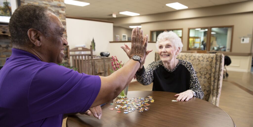 As experts in memory care, American Senior Communities offers a structured, research-based memory care program. We utilize a person-centered, wellness-based model of care that incorporates stimulating daily activities to sustain independence and promote a healthy spirit. Our skilled Memory Care professionals focus on maintaining a secure
