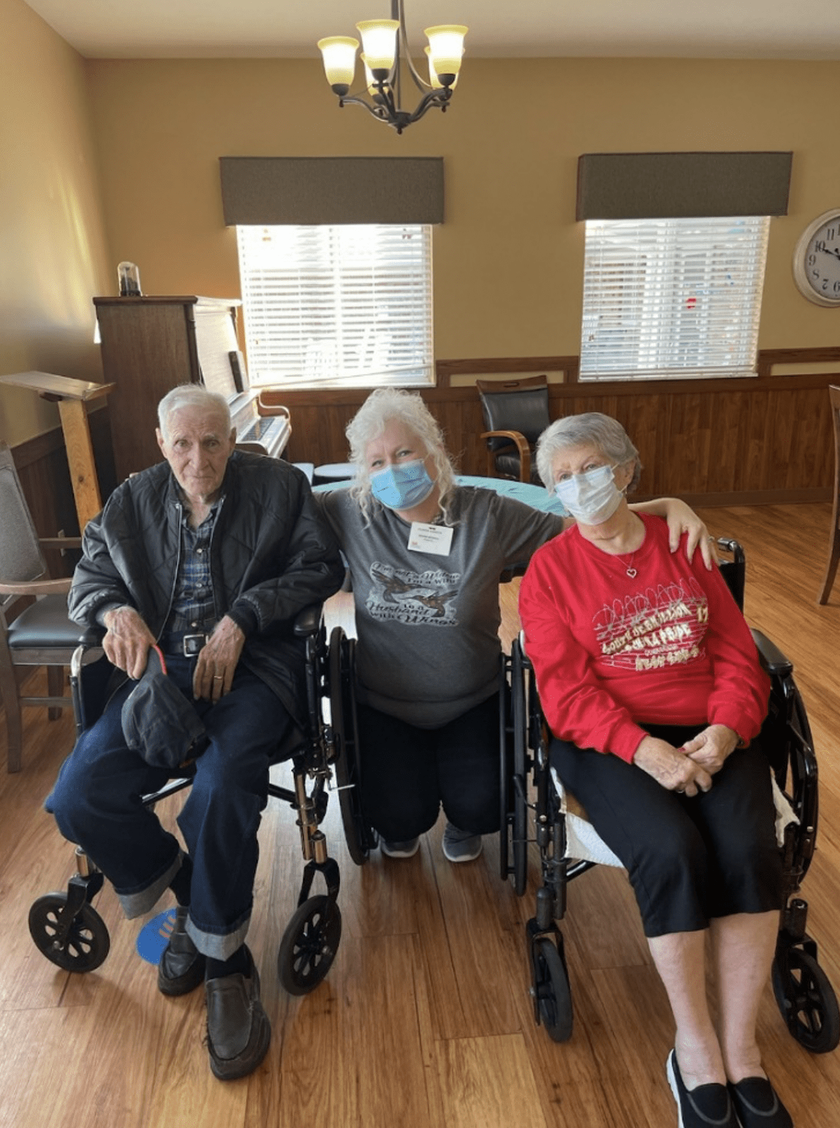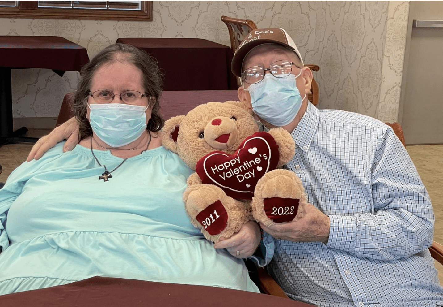 Ron and Myrna Crider celebrated their 56th anniversary with our team in November 2021. Our team members helped Ms. Myrna present the picture frame and heart to Ron for a gift. He brought our team lunch and cake to celebrate. Such a beautiful thing to see him when he comes to visit her!