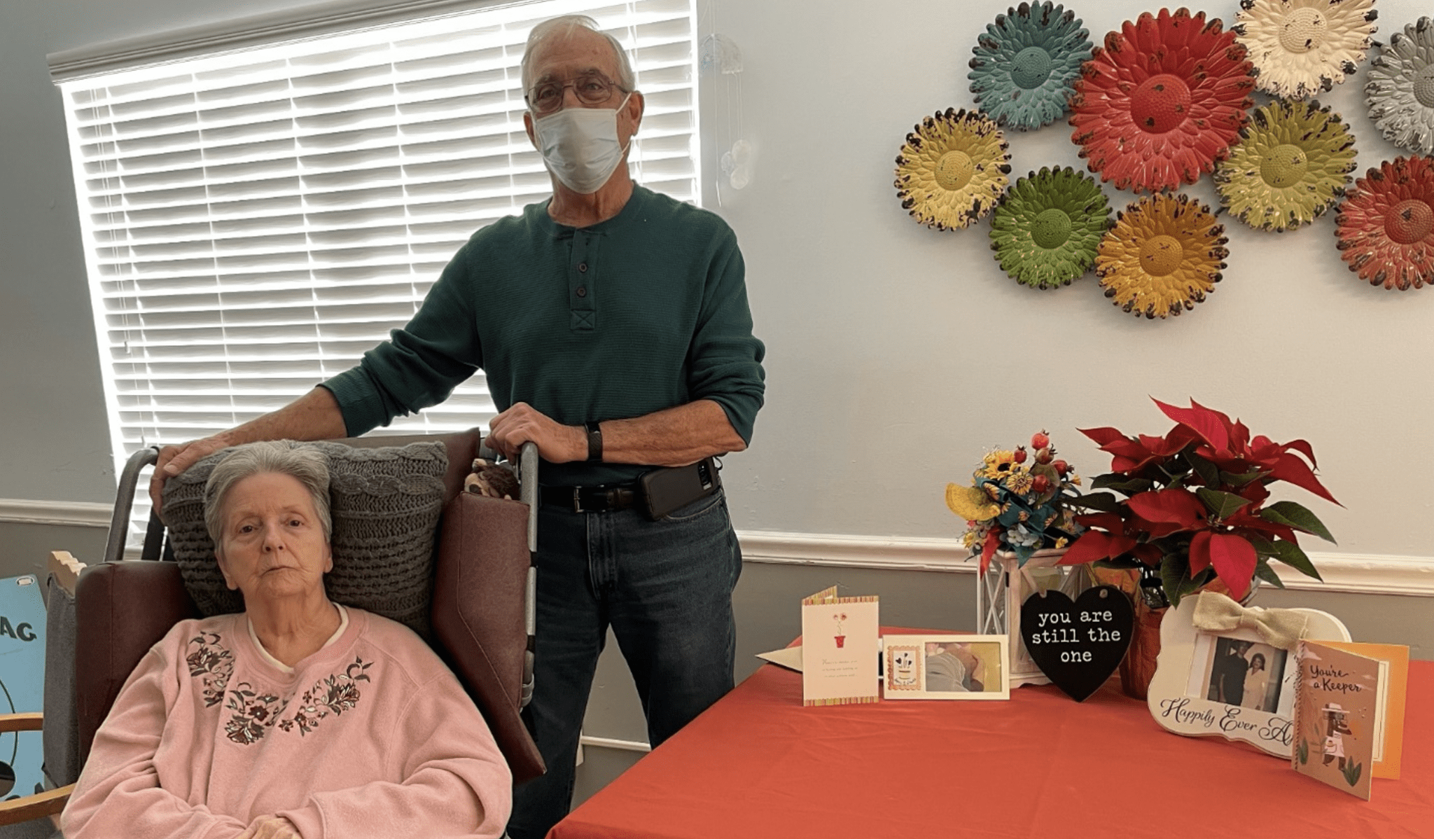 Ron and Myrna Crider celebrated their 56th anniversary with our team in November 2021. Our team members helped Ms. Myrna present the picture frame and heart to Ron for a gift. He brought our team lunch and cake to celebrate. Such a beautiful thing to see him when he comes to visit her!